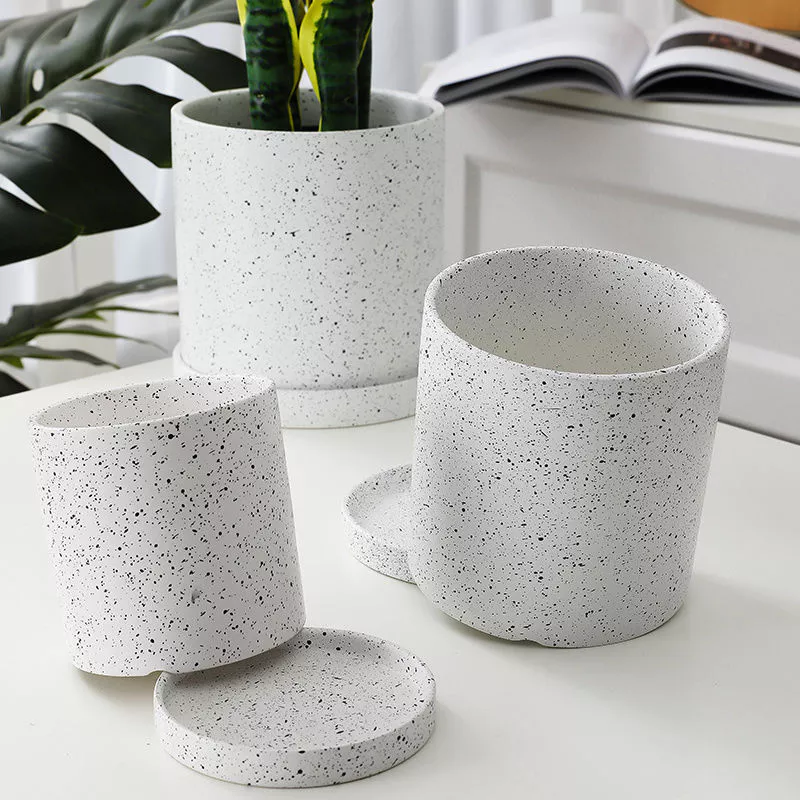 กระถางต้นไม้เซรามิก ขนาดเล็ก แบบเรียบง่ายพร้อมถาด 1 pcs.