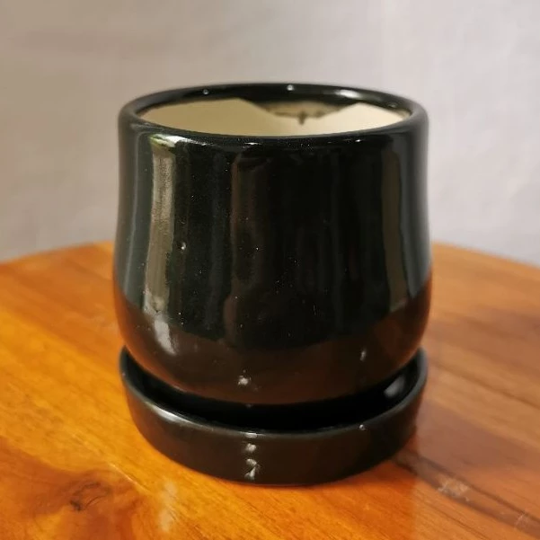 กระถางต้นไม้ วัสดุ เซรามิก ทรงไข่ตุ๋น กว้าง 3 นิ้ว พร้อมจานรอง